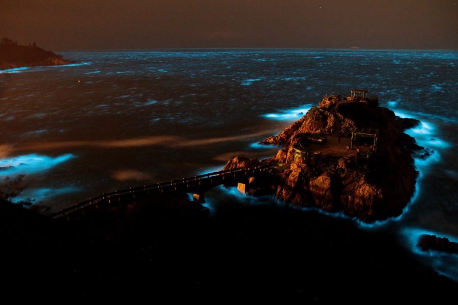而夜光藻必須在擾動的狀態下,才會發出湛藍光芒 ,這也是沿岸邊比較容易看見藍眼淚的原因!