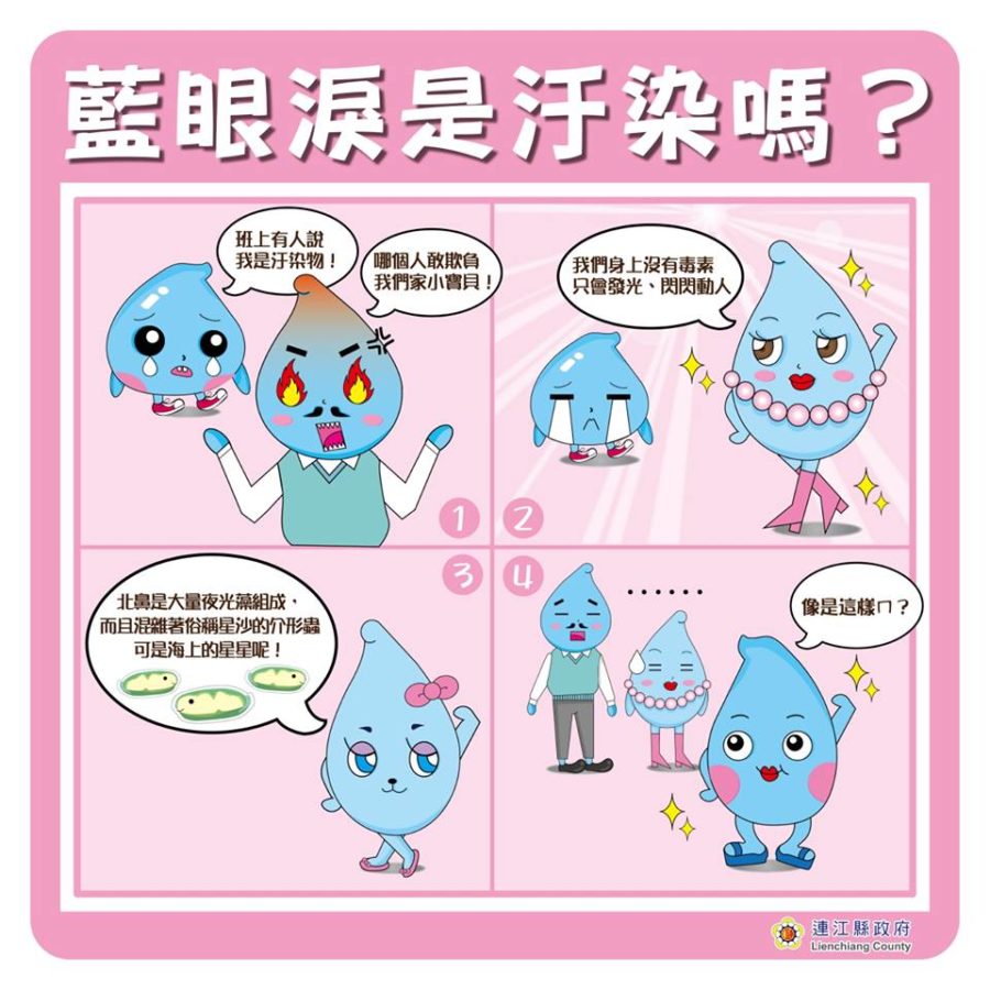 馬祖的所在位置是寒暖海流與大陸三江(閩江、連江和羅源)的交匯處,大量的藻類與浮游生物隨著海流飄到了馬祖,提供給附近海洋生物充分的營養,所以藍眼淚是生態資源豐富的象徵,並不是汙染!