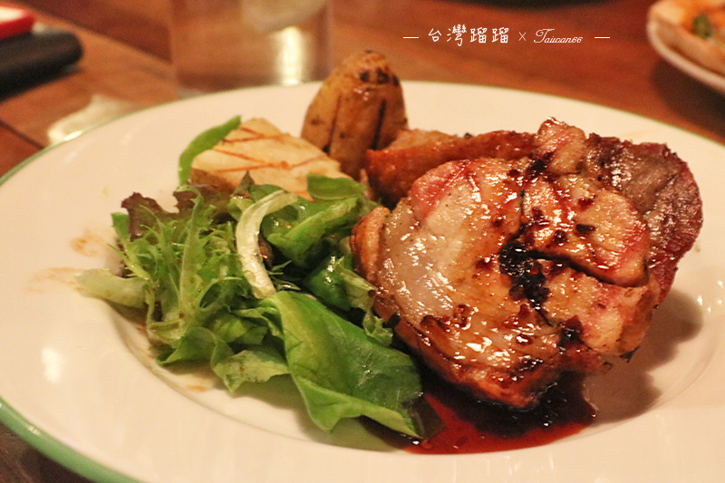 在波波廚房裡,也有一個窯,用來烤披薩和製作其他料理,像是這道羅馬窯烤豬肉卷,就是用窯烤出來的,外皮酥脆,肉質軟嫩開胃不油膩,沾點油醋醬,又是另一種層次的好味道!而且如果吃膩了的話,還有生菜和馬鈴薯可以解膩呢!