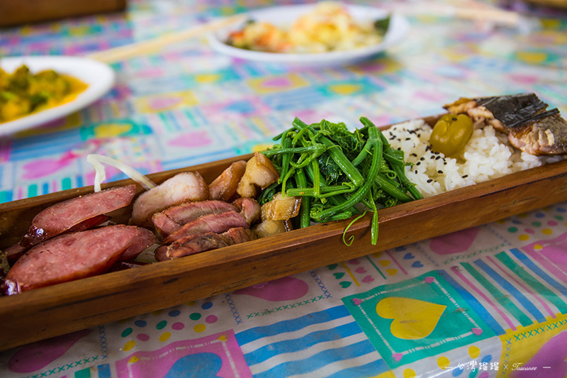 山豬肉、現採龍鬚菜、魚、脆梅,就是一頓豐盛的原住民風味餐。