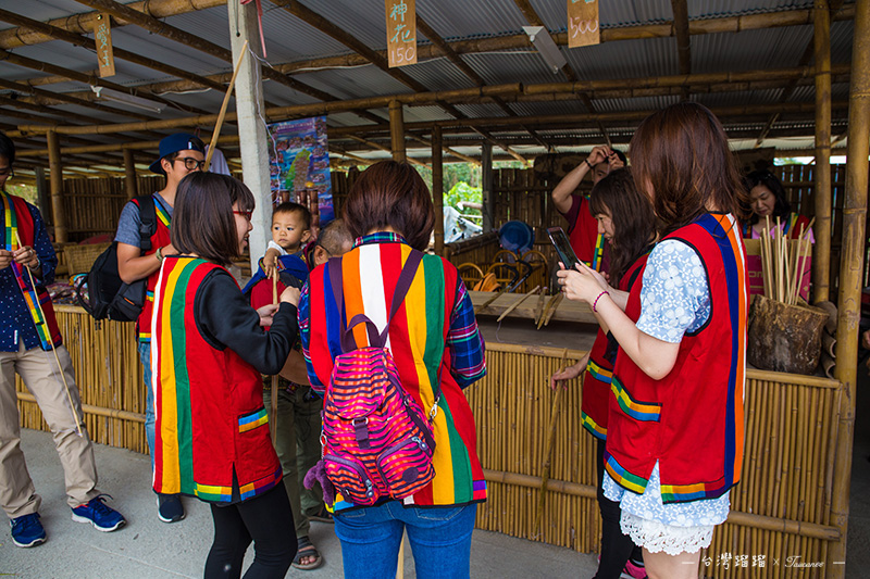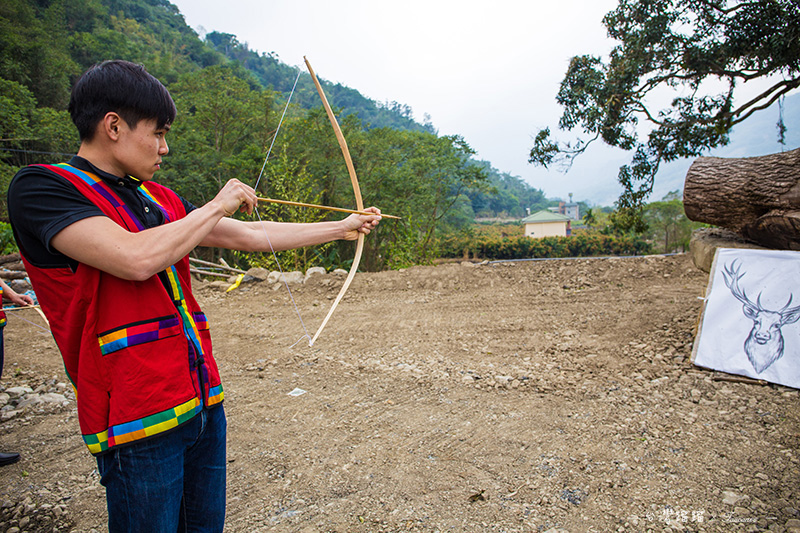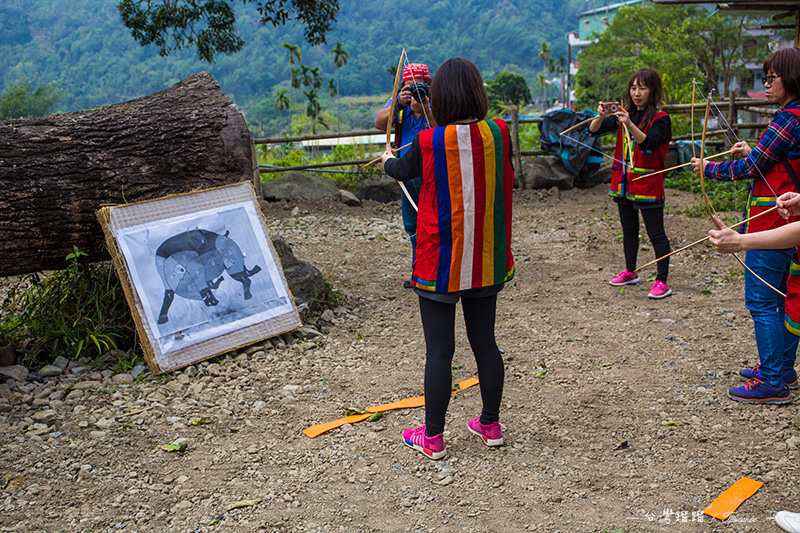 吃飽喝足後當然得運動一下,大家穿上原民服飾後,拿起弓箭準備活動一番。