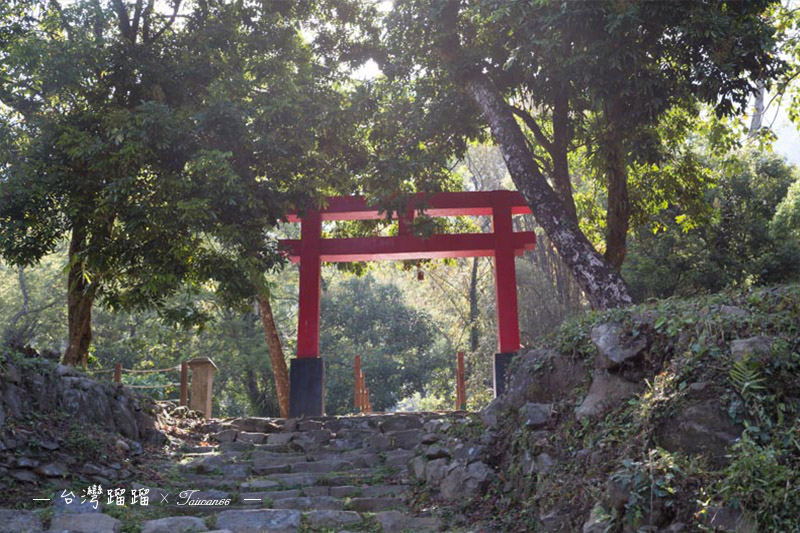 看到鳥居,表示你還有一段路要走 XD。這裡可不是遺址終點呀,繼續循著木棧道往上吧!