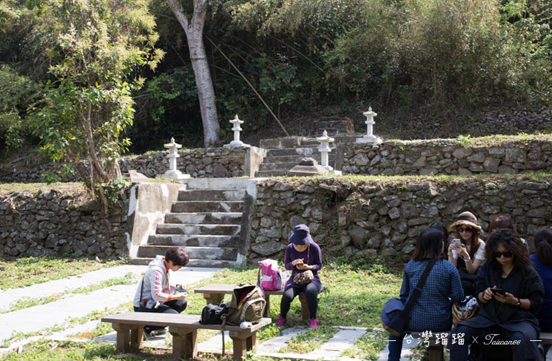 來到神社遺址的最上方,以前祭台的樣子已經見不到了,只剩幾座完好的石頭燈座,一旁有幾座木椅可供乘涼,剛爬上來整個人散發著熱氣,在木椅上休息一陣,感受吹來的涼風,感覺山裡的靜幽。
