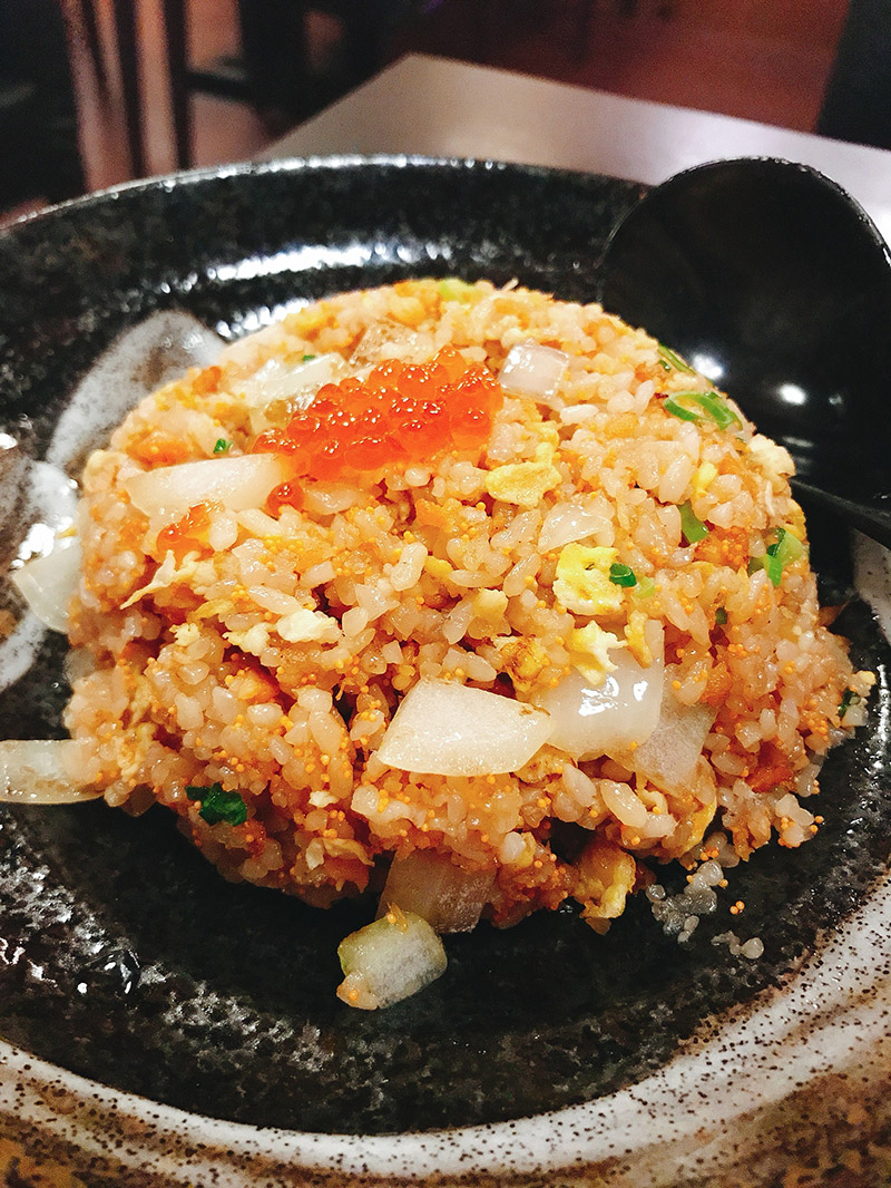 粒粒分明的炒飯,裡面還有蝦卵,炒飯上還有橘黃色的天然鮭魚卵,是一道大家都喜愛的餐點,除了吃飽又吃得巧!適合大家一起分食~
