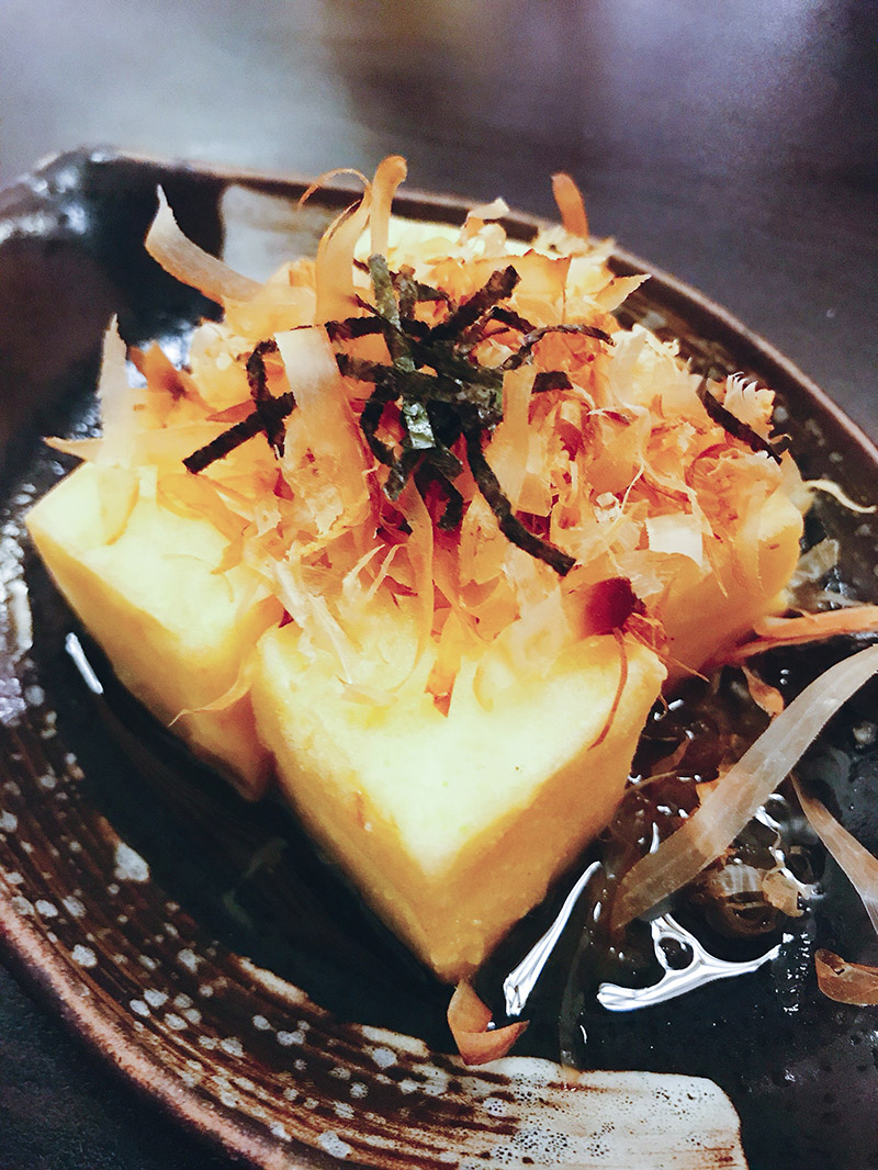 豆腐輕柔綿密,搭配日式醬汁也很爽口,豆腐要非常小心夾!可以一起跟朋友挑戰拿筷子的功力,很容易就夾破了~