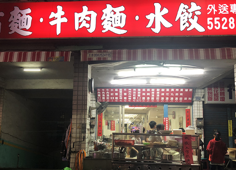 紅色的招牌就單純地寫著「外省麵、牛肉麵、水餃」