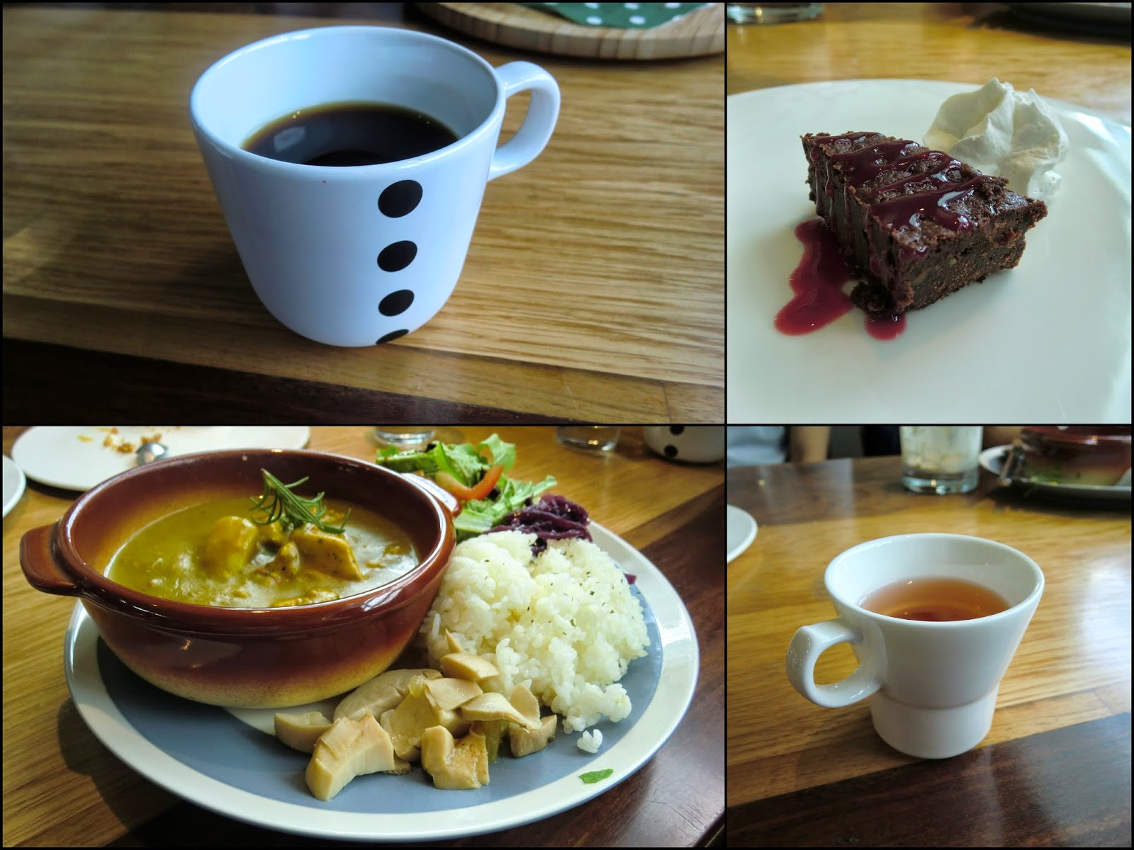 | 【假日套餐 - 椰香咖哩雞 NT. 380】嚴格說來是挺划算的選擇,因為假日套餐內含 "果醋 + 布朗尼 + 咖啡 or 茶 + 主餐"