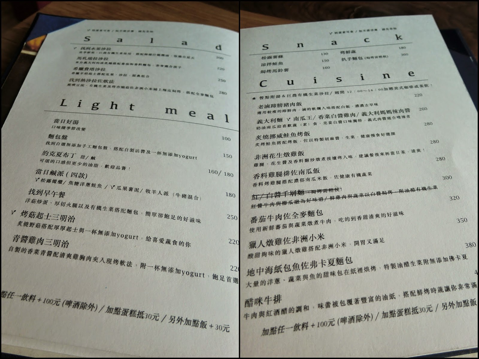 像是加點任一非酒精類飲料均一價 NT. 100,加點蛋糕折抵 NT. 30 等