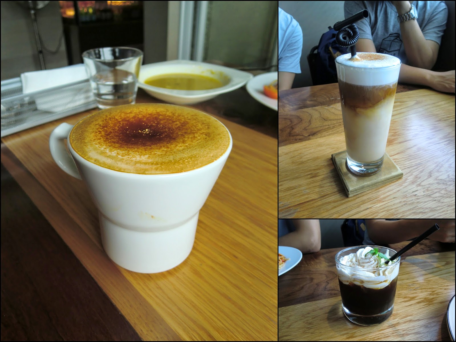 再灑上一層薄薄的黑糖粉,甜蜜的好滋味就隨著奶泡悄然的遺落在嘴角上友人 A 點的冰香草拿鐵 [右上] (原價 NT. 180),蠻大一杯的