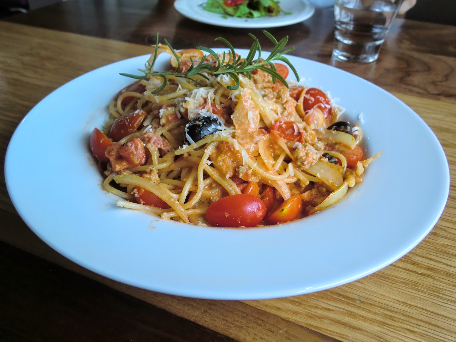 配料方面有新鮮小番茄、黑橄欖、洋蔥等等,整體的滋味滿不賴的,是款好吃的義大利麵! |
