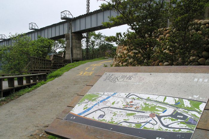 當台鐵南下列車進入山岳小站-勝興,終於得以輕快的步伐通過「開天」隧道來到交會列車的167號誌站,便到了號稱全台最高(33公尺)的鐵橋-龍騰鐵橋了,這座鐵橋是在1935年台中大震後所改建的新橋。而它東側的那座紅色斑駁的磚造斷橋遺蹟,就是舊山線第一名景-龍騰斷橋。