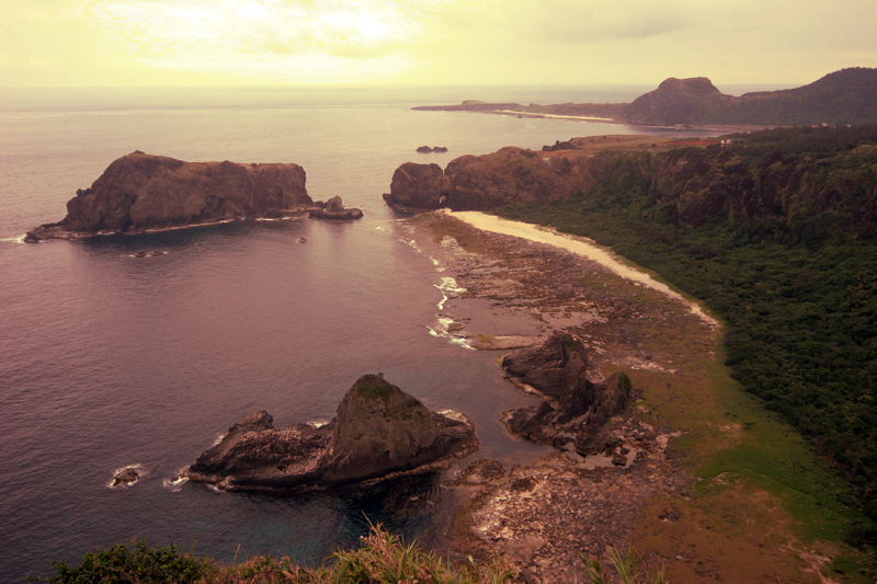帆船鼻與海參坪間也形成一個美麗的海灣,名溫泉灣。海參坪位於綠島東部海岸之中段的海灣,從被稱為「小長城」的步道登臨觀海亭,即可一覽無遺,「睡美人」、慵懶的仰臥在海岸,曲線玲瓏、姿態迷人;趴在一側的「哈巴狗」大耳下垂,眼睛半閉,逗趣可愛。