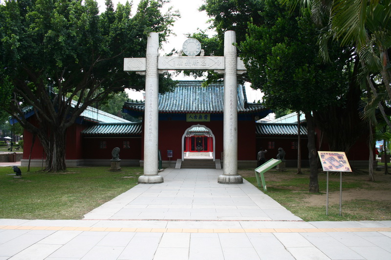 - 明鄭亡後,民眾對鄭成功念念不忘,暗中設廟奉祀,卻因政治顧慮,改稱「開山王廟」。 直到清同治年間,欽差大臣沈葆楨來台籌辦防務,深入瞭解民意,才從新建造「福州式」的寺廟。名稱也改為「明延平郡王祠」。 日本統治後1896年(明治29年)開山王廟變成紀念鄭成功的神社,祠名被改稱為「開山神社」,並且在隔一年1897年(明治30年)列為官制神社。雖然參拜殿是日式風格,但奉祀的本殿還是中國風。光復後,因為建築全部損壞,所以以中國北方宮殿式將廟宇重新建置。#陸客必去景點