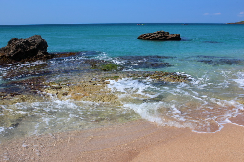 - 位於海岸景觀道路沿岸,以潔白細緻的白砂而得名的海灣,500公尺長的沙灘,相當適合海上活動。沙灘南北為黝灰的珊瑚礁岩,潮間帶比較短小,生物種類較少。北邊的海域,水質清澈。淺區以石珊瑚為主,軟珊瑚夾雜在其中,生物很多。海底景觀相當豐富,有石洞、拱門、峽谷等,海扇及柳珊瑚星羅棋布,數量甚多。合界地形變化較大,岸邊約3米至9米深;離開海岸約20米後,有一平台寬約10米,深度為25米。之後為向外的大斜坡,此地落差相當大而形成海底的大峽谷。礁岸壁上有許多的海百合,種類極多;珊瑚種類也不少,此地適於船潛。在靠近白沙灣的海底地形變化更大,有如階梯一般,因為處於巴士海峽與臺灣海峽相接處,海流相當強。海下生態完整,魚類數量及種類很豐富,各種的洄游魚、底棲魚都易出現。 從關山南下至上水泉右轉約2公里可抵達本區。擁有一片長約500公尺,寬約40公尺的潔白砂灘,而得名。其東側有台地為屏障,故冬天東北季風盛行時,海灣仍風平浪靜,全年均適合游泳、潛水、帆船等海上育樂活動。白砂目前尚未開發,充滿寧靜幽雅的韻味,計畫興建旅館、遊艇碼頭、停車 場、管理服務站等設施,充滿燦爛的發展遠景。#陸客必去景點