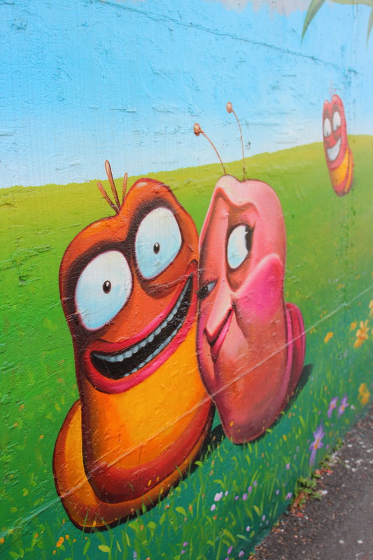 高雄仁武區出現了一個新祕境–後安社區彩繪街,這彩繪街的作者叫做蔡武龍先生,他本身原是電影海報刊版的繪圖師,在現場看到他的彩繪畫作畫的相當生動,主要強調美化社區之用途,僅供觀賞無商業用途。現場彩繪了變形金剛、海賊王、最新超紅的冰雪奇緣、小叮噹、海綿寶寶等等大人小孩看到都狂拍的場景。